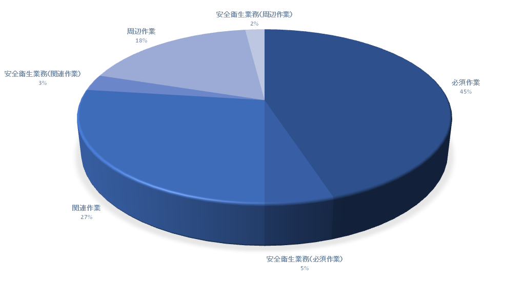 技能実習生が移行対象職種に従事する場合、業務時間の割合に要件が設けられています。すなわち必須業務の時間数が年間の実習時間全体の半分以上であること、関連業務は反対に年間の半分以下、周辺業務は3分の1以下である必要があります。 また、必須業務・関連業務・周辺業務それぞれにおいて、「安全衛生業務」を設定する必要があり、時間数としては業務毎に全体の10%以上を占めていることが要件となります。