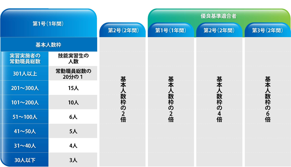 ※ 30人以下の企業では、技能実習生数が受入れ企業の常勤職員総数を超える事は出来ません。